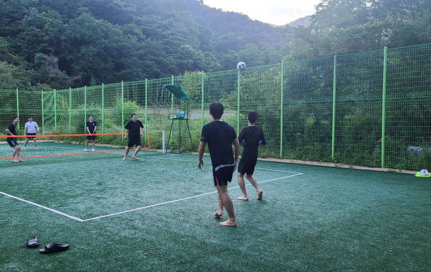 바로 앞에는 맑은 계곡과 도보 1분거리에 오토캠핑장과 여름에는 안전요원이 상주하는 큰 계곡이 있으며, 쾌적한 족구장도 이용 가능합니다.